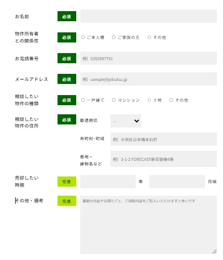 マークスライフ株式会社の査定依頼は、成仏不動産と共通の公式ページのフォームから行えます。けっして事故物件だけではありませんので、そのまま依頼してみてください。
