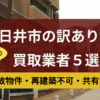 築古物件・事故物件・瑕疵物件・再建築不可物件・違反建築物件・旧耐震・シロアリ被害・雨漏り・共有持分・古アパート・長屋・連棟・立ち退き物件・底地・借地権・紛争物件