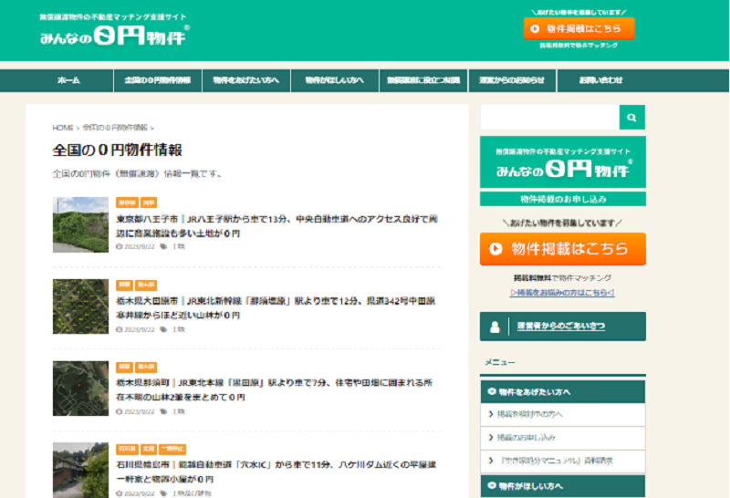 不動産譲渡サイトの「みんなの0円物件」