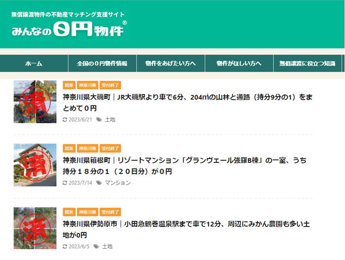 物件の写真と説明をサイトに掲載、欲しい人がそれを見て連絡をくれれば、無料で不動産を譲るという仕組みです。