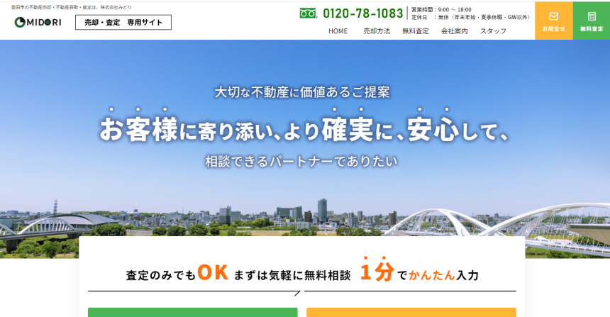 リビンマッチは仲介の他買取専用の不動産一括査定サイトがあり、地方に強い一括査定として利用したい一括査定No.1がリビンマッチです。
